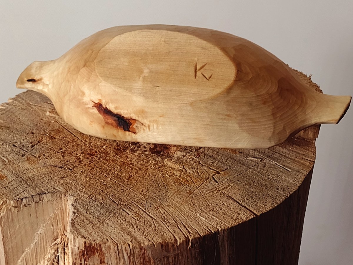 This little whittled bowl was hand carved in our shop using axe, adze, and knives. The wood was collected by coppicing and thinning trees, and is now being used for some of our wood carving projects.
